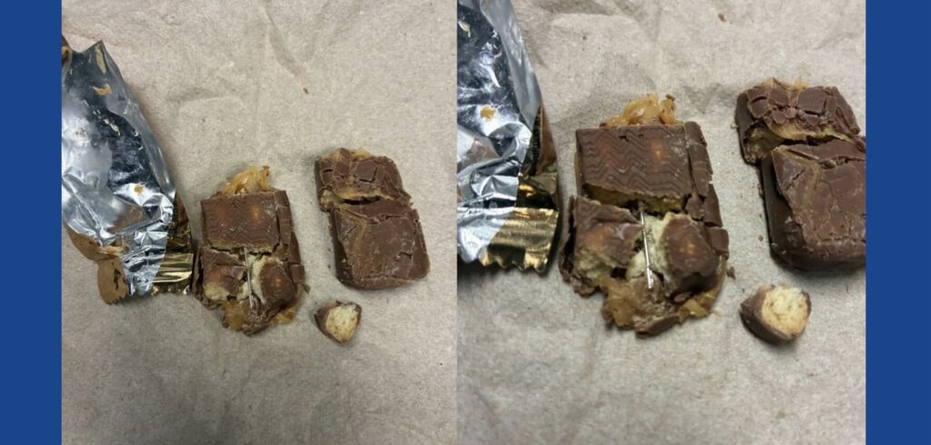 Major Terry Flatt, the department’s public information officer, said Sunday that police were notified about candy that appeared to contain a needle.