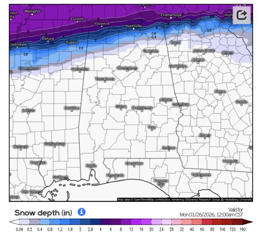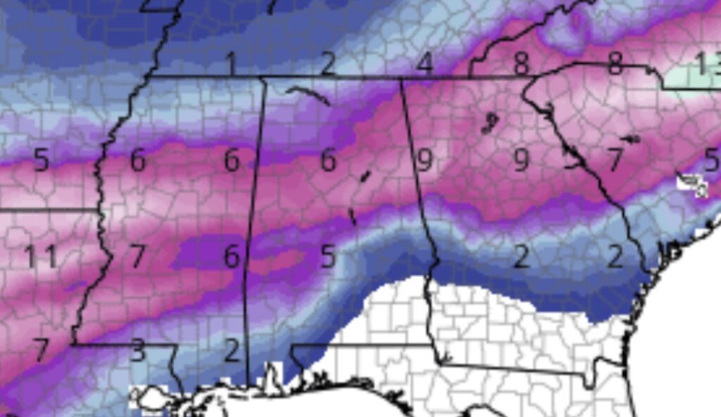 When it comes to snow totals, the GFS is showing a more southern track which means more snow for the bulk of Alabama.