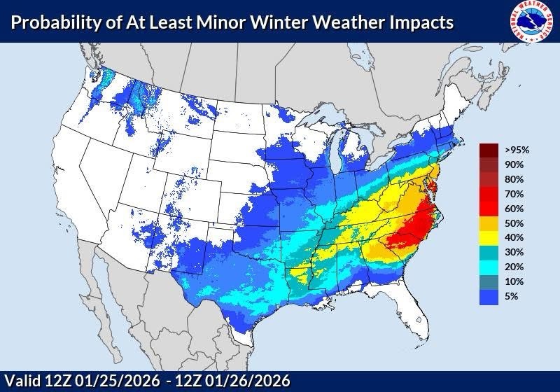 The National Weather Service is currently predicting at least a decent chance of minor winter weather impacts in Georgia this weekend.