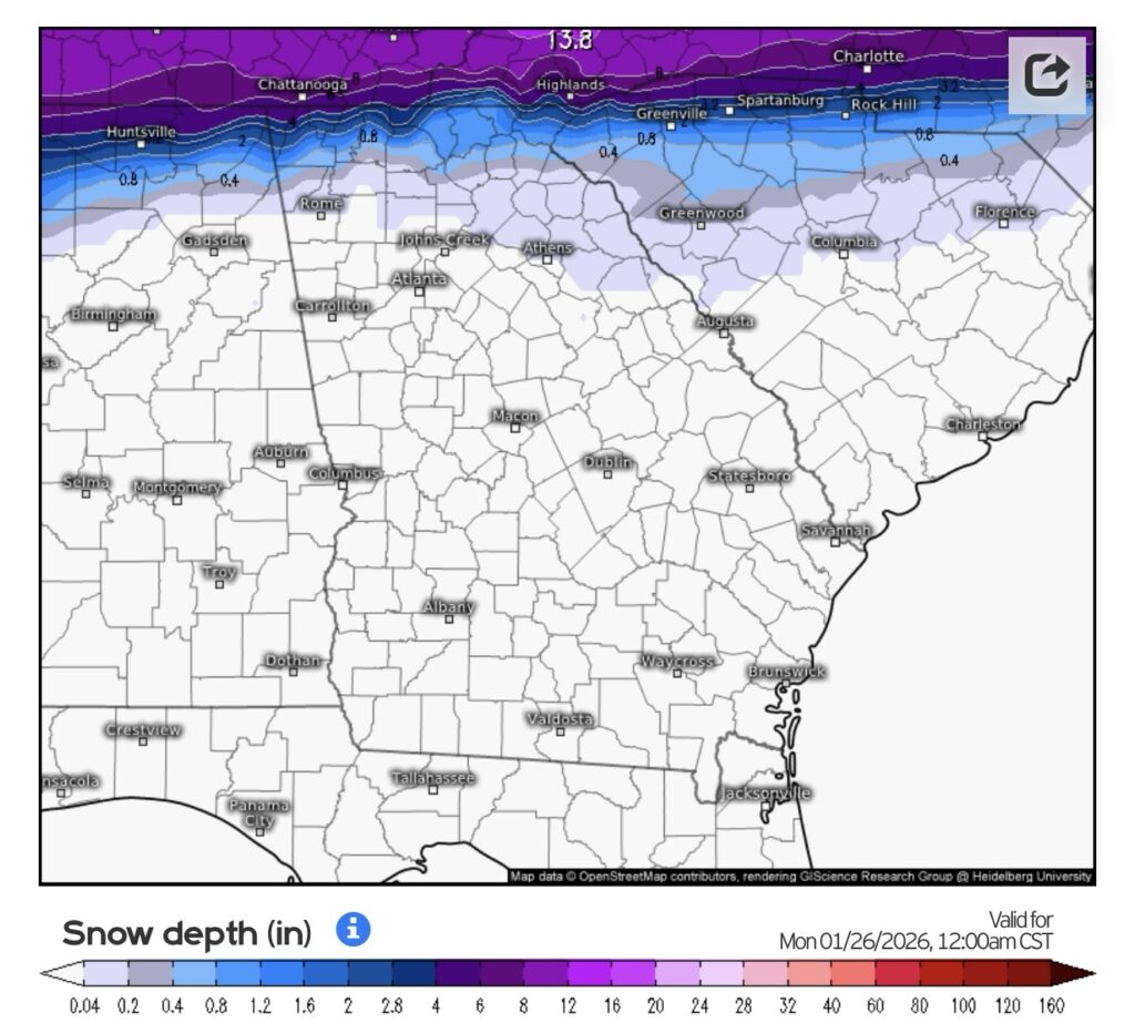 Both the Euro and GFS models are showing a winter storm moving in from the southwest and to the east coast affecting Georgia Saturday January 25, and Sunday, January 26.