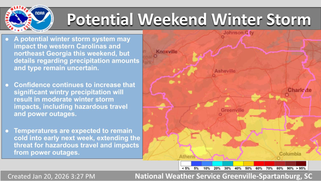 NORTH CAROLINA — A potentially significant winter storm is taking shape and could impact much of North Carolina over the upcoming weekend, according to National Weather Service offices and multiple regional meteorologists.