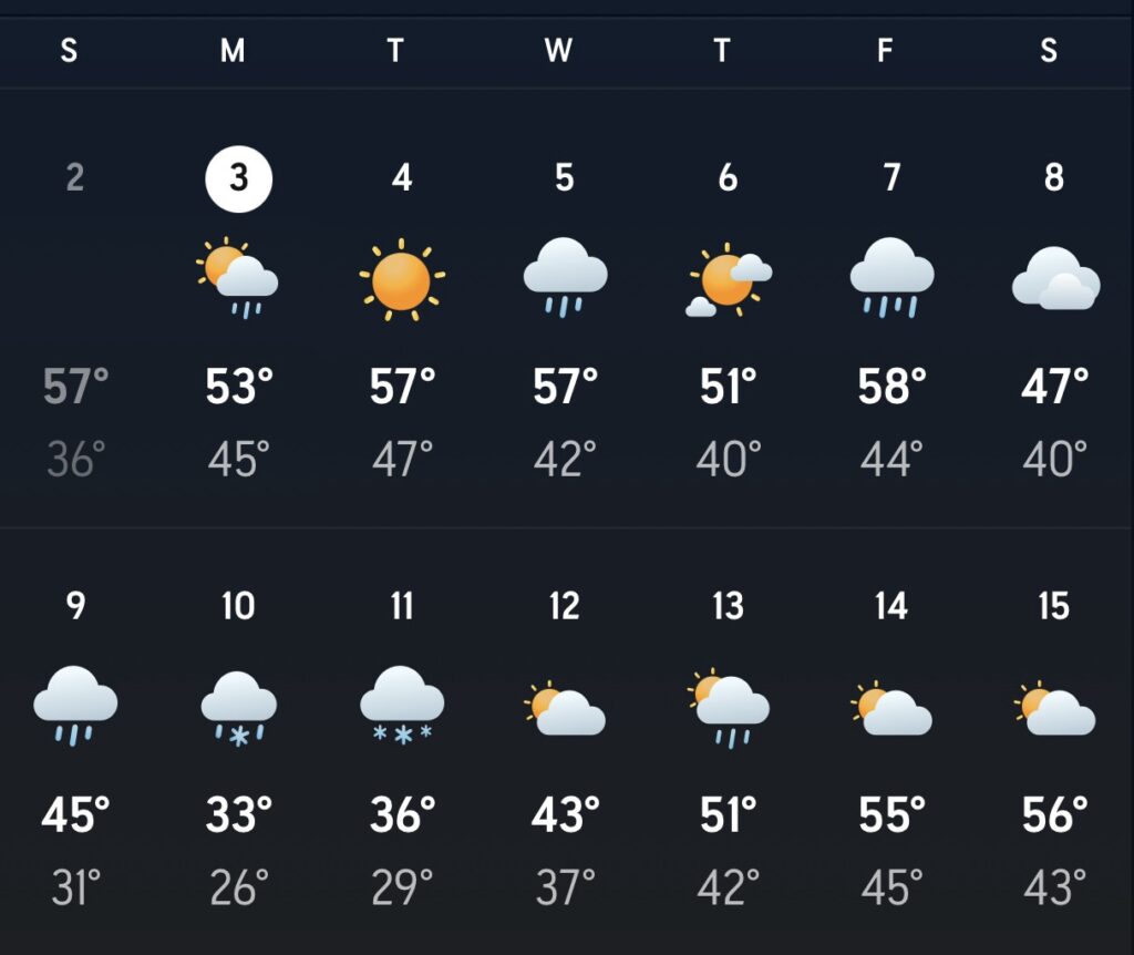 With highs in the 30s and lows in the high 20s.
