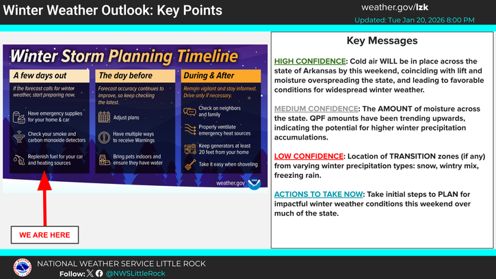 According to the National Weather Service office in Little Rock, conditions are favorable for a winter storm to develop between Friday and Sunday.