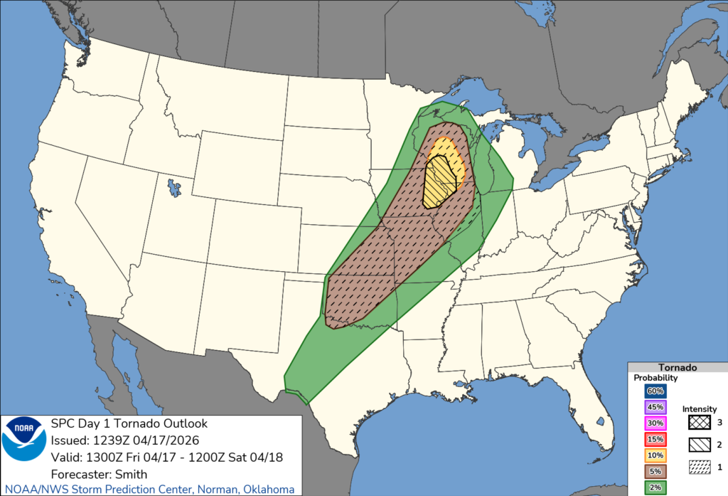 In its Day 1 Convective Outlook issued Friday morning, forecasters placed areas of the Upper and Mid-Mississippi Valley under an enhanced risk for severe thunderstorms. This includes parts of Illinois, where conditions are expected to become favorable for dangerous storms later in the day.