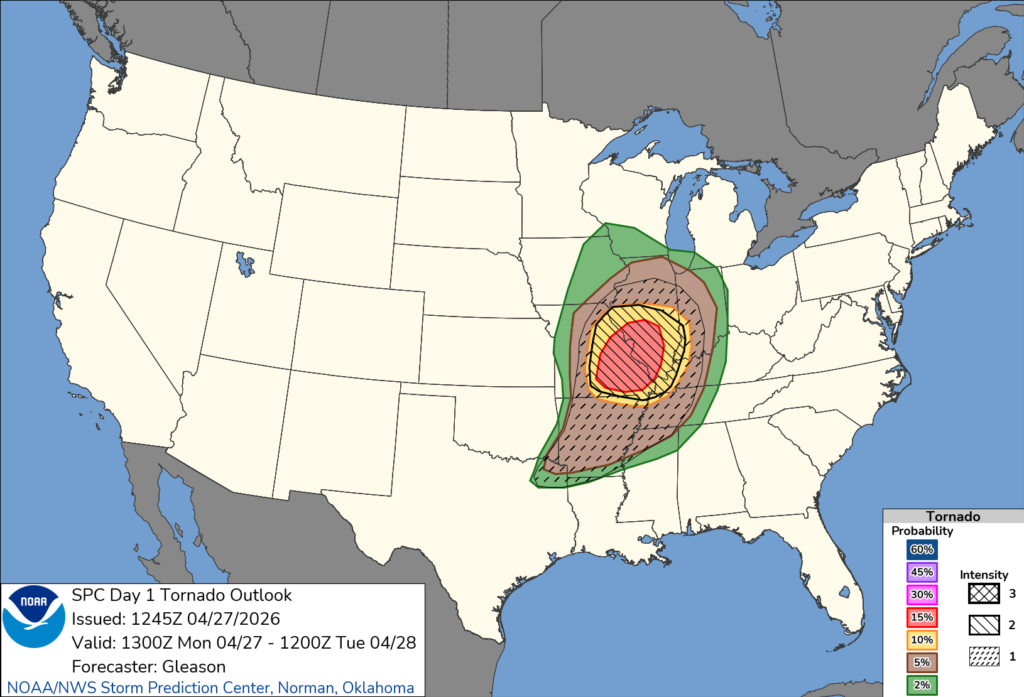 According to forecasters, numerous severe thunderstorms are expected, with the potential for “multiple strong to intense tornadoes,” some of which could reach EF-2 or EF-3 strength or higher.