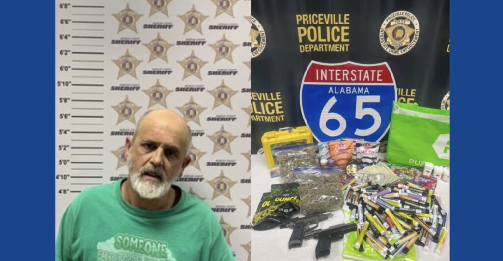 ALABAMA — A routine traffic stop on I-65 early Monday morning led to the arrest of a Florida man after police discovered drugs, cash, and weapons in his vehicle.