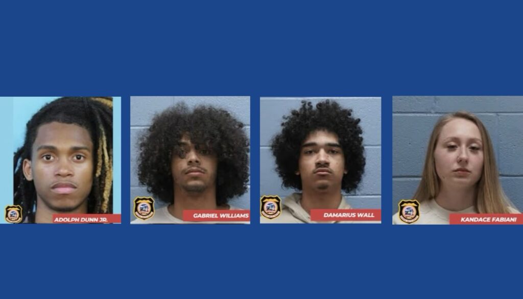 The following individuals were charged with four counts of unlawful breaking and entering a vehicle and two counts of second-degree theft of property: Adolph Litay Dunn Jr., 18, of Auburn; Gabriel Drayon Williams, 18, of Lanett; Damarius Kobe Wall, 18, of Valley; and two male juveniles.