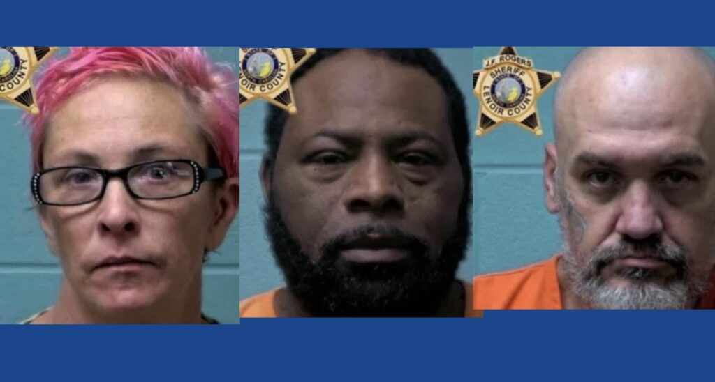The three suspects — Michael Jackson, Sheena Britt, and Offen Davis III, all of Lenoir County — were booked into the Lenoir County Jail on the following charges: