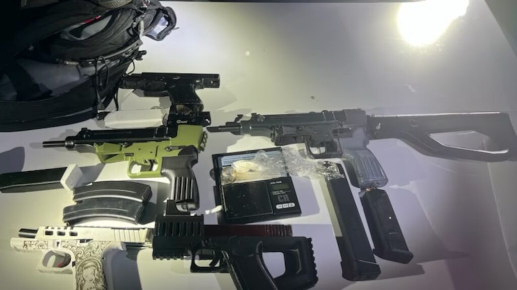 The investigation led to the discovery of methamphetamine, THC concentrate, fentanyl, and several firearms, including unserialized 3D-printed handguns with extra ammunition.