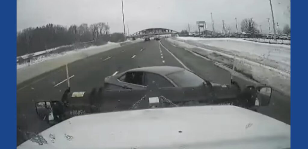 Video released by ODOT shows the plow continuing forward, briefly pushing the car as it spun to the side.